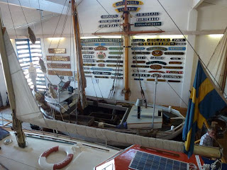 ”På vägen ut i båthallen passerar du förutom livräddningsredskap en äkta styrhytt från en trålare och en rekonstruerad ”byssa”. I båthallen ser du Golden Lady, den trefaldige ensamvärldsomseglaren Kurt Björklunds segelbåt. Du kan här också se hans unika snäcksamling från världsomseglingarna och olika medaljer och utmärkelser som han fått.