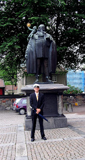 Här poserar han veckan före framför sin skolas grundare Johannes Rudbeckius.