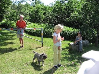 Vid vår sedvanliga löprunda på Svedberga mötte vi denne man med hund och två barnbarn ? varav den ene lystrade till namnet Sigge.