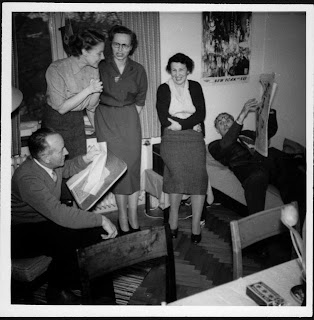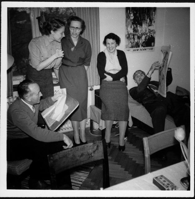 Här är ”gänget” vid ett tidigare tillfälle, hösten -55 då min med.cand. avfirades på Akademiska föreningens restaurant. Innan dess var det samling på mitt rum på Studentskegården.
