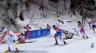 Först åkte herrarna dubbelstart. Marcus Hellner var på bettet, men hade otur och vurpade vilket fick honom att tappa 22 sekunder och bonuspoäng. Visserligen kom han igen men nådde inte ända fram.
