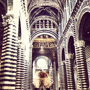 Mest iögonfallande är stadens katedral, belägen på stadens högsta höjd, som trots bristande enhet till följd av den långa byggnadstiden och de olika konstnärer som arbetade på den, är ett av den italienska gotikens mästerverk. Den påbörjades 1229 och nalkades sin fullbordan 1259; 1264 tillkom kupolen, och omkring 1317 utbyggdes koret mot öst över dopkyrkan San Giovanni, som bildar ett slags krypta. En ombyggnad som påbörjades 1322, till vilken den nuvarande kyrkan skulle utgöra tvärskepp, övergavs efter pesten 1348, och den ursprungliga byggnaden fullbordades, västra fasaden 1380
