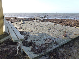 Av fyra bryggor var det bara den längst i norr, som man av bitter erfarenhet förr om åren lärt sig att demontera inför höst och vinter, som stått sig. Den lilla, näst sydliga syntes över huvud inte till,