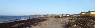På måndagsförmiddagen var det ett riktigt angenämt väder. Vinden hade bedarrat högst avsevärt , 8° varmt i solens sken. Väl nere på stranden såg man hur vågorna sköljt upp 30-50 meter och lämnat en tångkransad sjö.