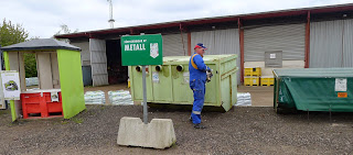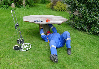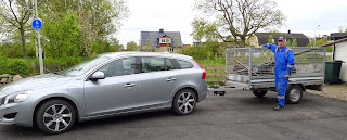 Efter att ha klippt gräsmattan med den återupplivade klipparen gav sig assistenten iväg på inköpsrunda. Där köptes ny skottkärra och diverse lampor:
