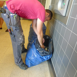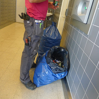 Uppröjning Publicerat 31 juli, 2015 av gunilla Efter kalas i dagarna tre hade jag ju en och annan tomflaska MEN Det blev att vänta… Mannen här hade två säckar fulla med ölburkar OCH stationen intill var trasig…