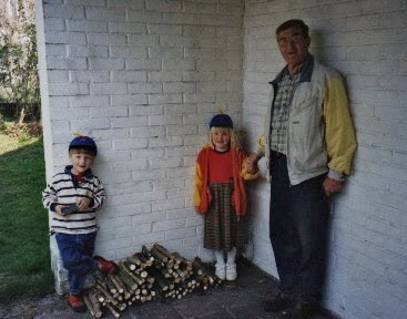 Här har dagens båda födelsedagsbarn redan startat som Farfars hjälpredor när det gäller en av hans huvudintressen: VED.