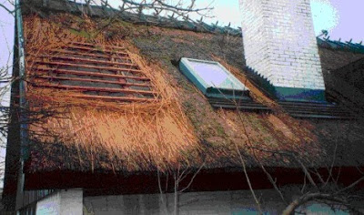 Vårt halmtak har, efter stormen, 34 sekm i Helsingborg den 8/1 2005,