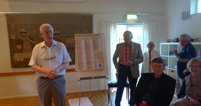Den gick av stapeln fredagen den 4 juni med start kl 18 i Kyrkstugan. Vid min ankomst var lokalen till brädden fylld av förväntansfulla medlemmar. Jag slog mig ner hos ännu en barndomsbekant, denna gång från Persgatan 53, där min vagga vaggade. (Så äfven VA:s men 10 år senare…)
