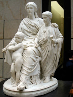 An anecdote, likely invented, demonstrates Cornelia’s devotion to and admiration for her sons. When women friends questioned Cornelia about her mode of dress and personal adornment, which was far more simple and understated than was usual for a wealthy Roman woman of her rank and station, Cornelia indicated her two sons and said, ”These are my jewels.”