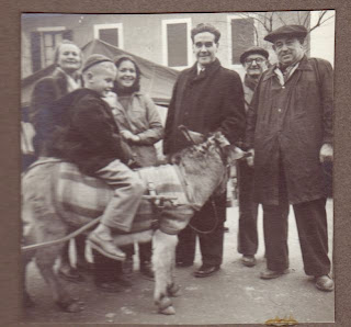 Här är ett foto som Per tog under julvistelsen 1954. På åsnan lillebror Björn.Mor Gunborg längst upp till vänster.