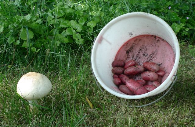 Den sättpotatis jag valde var en ”byffe -variant”, dvs små och välsmakande – jag har nu glömt vad sorten hette. Att jag valde just den berodde mest på att de var dyra, så jag fick bara hälften så många,
