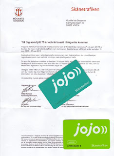 Brevet från kommunen handlar om att vi som är 75+ nu får ett GRATIS-kort som från den 15 augusti ger fritt bussresande överallt inom Höganäs.